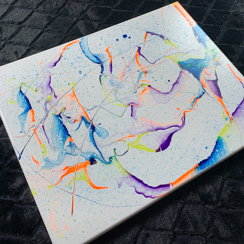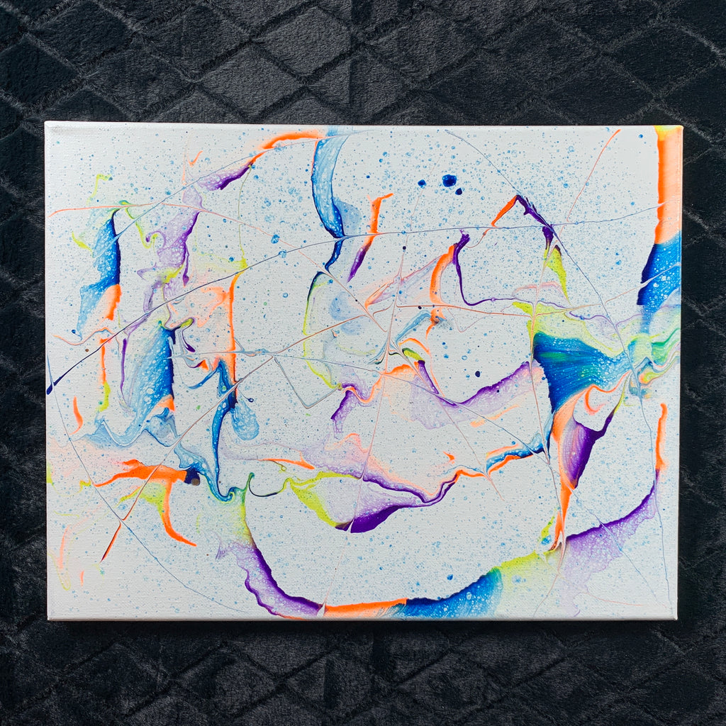 The process used to create each abstract pour painting is such that every artwork is unique and cannot be replicated exactly. You will own a one-of-a-kind creation. All my pour paintings attempt to capture the beauty and design found in nature and will enhance any space in your home or office. The painting is signed on the back.